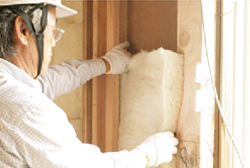 불연성의 유리를 면상으로 섬유화, 그 간극에 공기를 가두어 불에 강하고 안전한 단열재. 발수성, 흡음성이 뛰어나 흰개미 등의 해충에도 안전합니다. 재활용 유리를 사용하기 때문에 친환경적인 소재입니다.