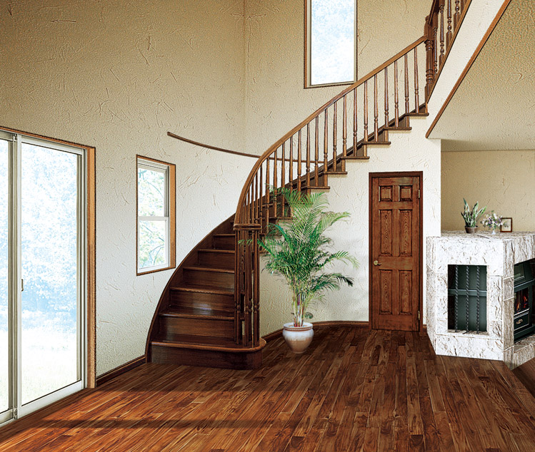 주방과 거실을 잇는 다이닝은, 개방감이 뛰어난 대공간에 곡선 계단을 두어 품격있고 편안한 휴식공간을 연출합니다.구획을 없애면서도, 각각의 공간을 적절히 분리하여 시야를 가리지 않고 개방감과 프라이버시 공간을 양립시켜 항상 가족을 느끼며 정을 한층 깊게 합니다. 마음 편히 대화를 즐기거나, 가족 모두가 프라이버시를 즐기는 소중한 거실을 연출.