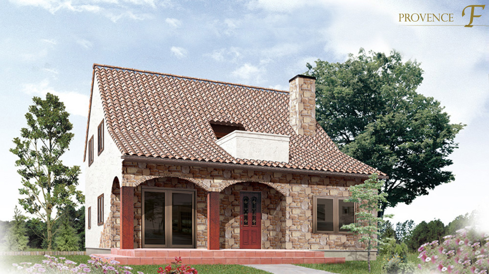 붉은 지붕가 테라코타 타일, 아치가 있는 현관 포치와 스톤, 미늘로 장식된 프로방스의 미의식을 높인 개성적인 거주지.부드러운 햇빛과 상쾌한 바람, 그리고 꽃과 녹색이 잘 어울리는 집.