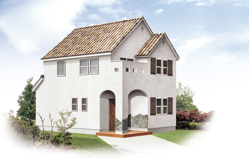 덧바를수록 감촉이 늘어나는 바름벽, 초벌구이 타일과 앤틱한 정취가 있는 원목도어. 어떻게 보아도 귀여운 마치 카페 같은 집.